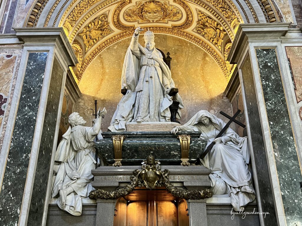 El Monumento a León XIII: Este Papa es recordado por impulsar una gran restauración material y simbólica de la basílica. Su pontificado fue clave para redefinir el papel del Papa como una autoridad espiritual en un momento en que la Iglesia perdía gran parte de su poder político o «temporal». Es un monumento imponente que simboliza la continuidad apostólica de la sede romana