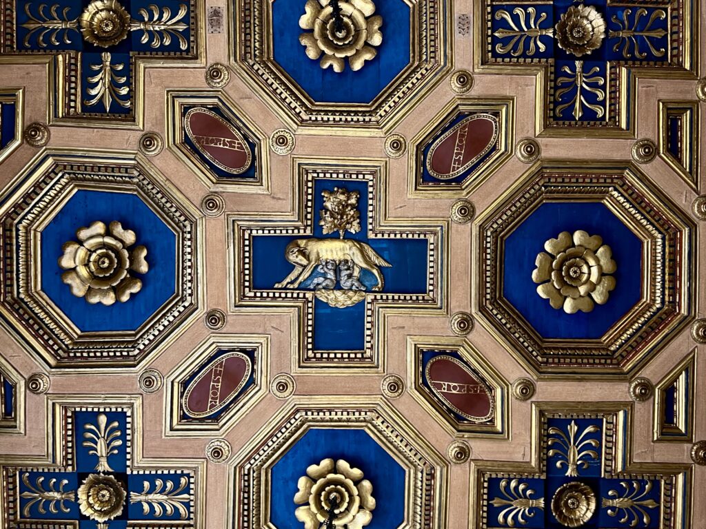 💡 Fíjate en el detalle: el techo de madera (1516) es el más antiguo del palacio y en él aparece la Loba Capitolina.