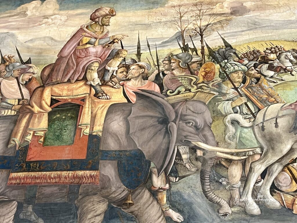 Los frescos de Jacopo Ripanda (1500 aproximadamente). El más famoso es el de la pared central, que muestra a Aníbal en Italia.